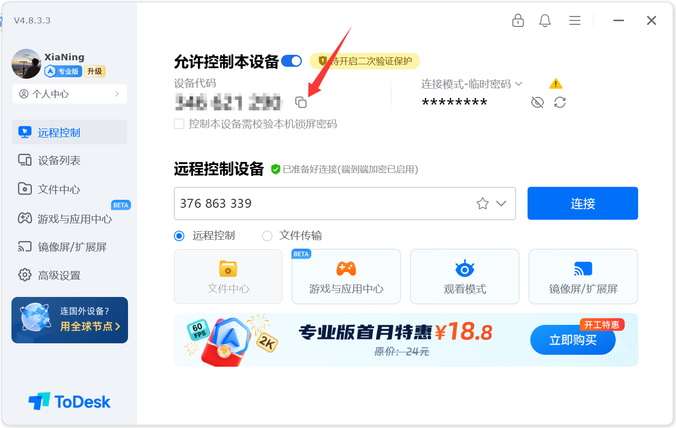 注入失败或游戏闪退解决远程协助本页总览远程协助 下载软件 远程工具: 下载远程工具 获取设备码 点击复制按钮,将 ID 和 密码 发送给售后 售后联系方式从售后群找到管理或者群主,发起私信即可 注意事项并不是24小时在线,远程之前询问售后是否可提供远程帮助